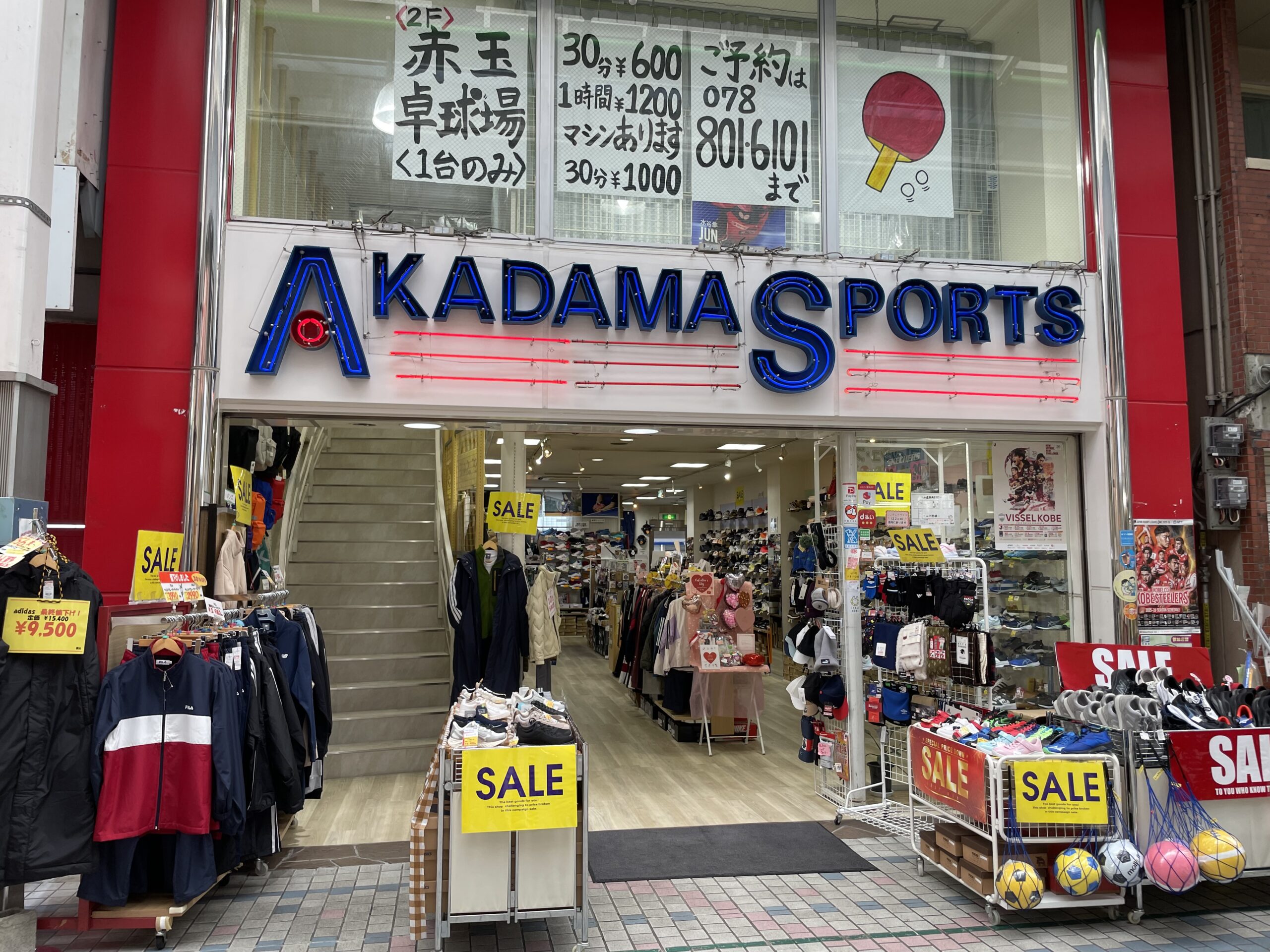 昭和8年創業のスポーツ用品店です。野球、卓球、シューズ、ウェア、足袋靴などの用品だけでなく、道具のメンテナンスやガット張りもいたします。2階では卓球場やピラティス教室、健康セミナーなども行っております。