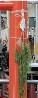 水道筋恵比寿神社でも、歳末から1月10日の大祭まで、この珍しい「さかさ門松」でお迎えをしています。